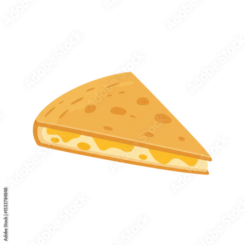 A vibrant slice of cheese with a golden crust on a plain background, ideal for culinary themes
