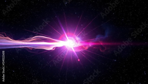 A vibrant, supersonic streak of light explodes across a dark, star-dusted nebula, astral, cosmic