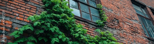 A vibrant vine clings to an aged brick wall, showcasing nature's resilience and beauty in urban architecture.
