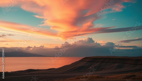 sunset, sky, landscape, sunrise, cloud, sun, mountain, nature, cloud, mountain, orange, sunlight, dusk, red, desert, morning, evening, view, light, travel, yellow, dawn, hill, colours, hill