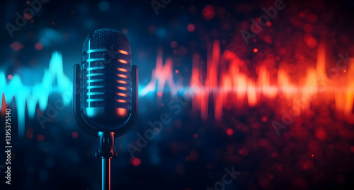 A vintage microphone in vibrant colors with sound waves, representing the essence of music and audio technology.