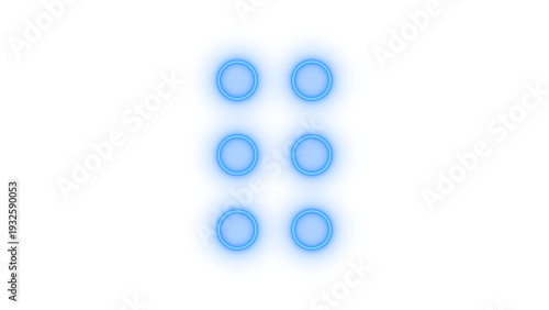 braille, number, 6, letter, alphabet, signs, symbol, communication, accessibility, visually, impaired, blind, education, learning, system, dot, circle, pattern, arrangement, structure, pictogram, icon, interface, element, graphic, design, template, neon, glow, light, blue, bright, vibrant, modern, futuristic, digital, technology, abstract, concept, idea, render, three-dimensional, illustration, vector, transparent, isolated