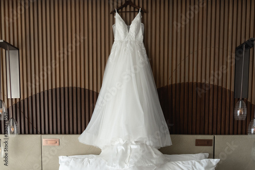 A wedding dress or bridal gown is the dress worn by the bride during a wedding ceremony.