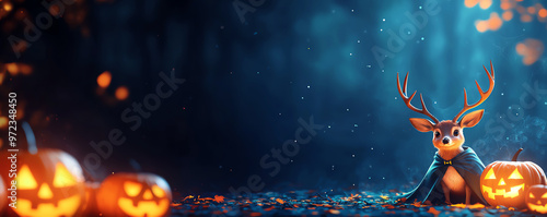 cervid, pumpkin, forest, whimsical, surround, glow, mystical, dark, honed, halloween, animal, beauty, nature, decor, design, cartoon, timberland, artwork, character, background, cheerful, showcase, landscape, playful, night time, gemstone, harvest, spirit, legend, display, festive, whimsy, silhouette, season, folklore, ornate, whisper, autumn, shadow, creature