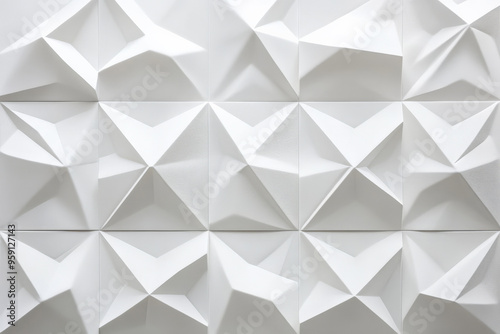 A white textured surface with a geometric pattern of embossed triangles. The pattern is bold and modern, with a strong contrast between the raised and flat areas.