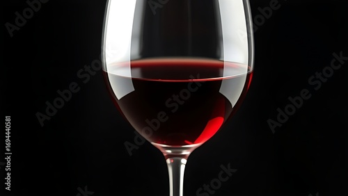 A wine glass filled with deep red liquid, highlighted against a dark background.