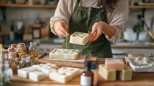 hand-made, soap, natural, organic, artisan, homemade, spa, wellness, beauty, skincare, aromatherapy, herbal, botanical, green, fresh, clean, healthy, environmentally friendly, sustainable, minimalist, simple, rustic, wooden, craft, bricolage, home decor, gift, cardboard box, product, lifestyle, relaxation, mindful, well-being, luxury, delicate, fragrant, botanical, herb, ingredient