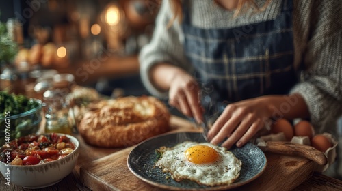 A woman preparing a nutritious breakfast in the kitchen, symbolizing her commitment to a healthy lifestyle.