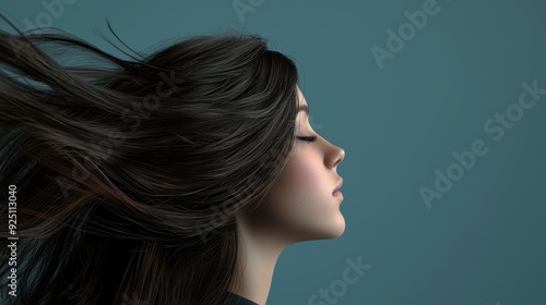 woman, hair, portrait, beauty, person, model, female, young, face, adult, fashion, attractive, caucasian, isolated, head, skin, coiffure, studio, white, side, profile, looking, glamour, long, care, style, brunette, expression, serious, make-up, pretty, healthy, cute, lady, confident, 1, silhouette, cheerful, smile, happy, relax, lip, casual attire, attitude, smooth, straight