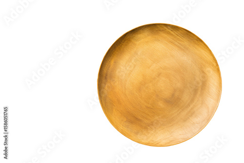plate, wooden, round, minimalist, natural, texture, golden brown, isolated, white background, single object, topview, kitchen utensile, rustic, dining, craftsmanship