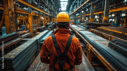 manufacturing, industry, factory, automation, engineering, workshop, workspace, industrial, equipment, safety, men at work, steel, production, inspection, machinery, process, environment, layout, storage, operation, quality, logistic, tool, infrastructure, material, system, gear, oversight, structure, workplace, inventory, technique, labor, collaboration, teamwork, technology, monitoring, maintenance, efficiency, craftsmanship, assembly, health, responsibility, capacity, performance, standard, freight, distribution, generative, ai