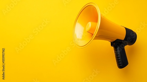 A yellow megaphone on a bright yellow background, symbolizing communication and announcements.