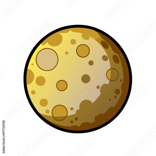 A yellow planet with a white background. The planet is round and has a lot of spots. It looks like a cartoon