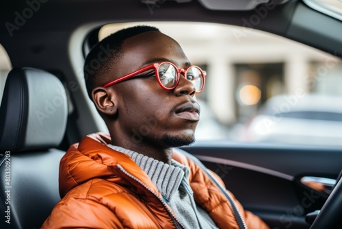 african american, man, driving, car, alone, serious, city, street, transportation, travel, work, business, professional, young, adult, male, person, human, individual, driver, vehicle, automobile, auto, single, isolated, solitary, independent, autonomous