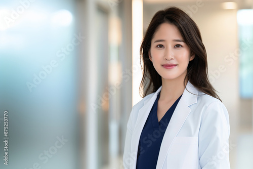 doctor, female, professional, health care, hospital, white, coat, medicals, confident, japanese, chinese, korean, asian, modern, young, calm, competence, dedication, staff, practitioner, men at work, portrait, standing, attire, work, health, nurse, specialist, woman, person, uniform, smiling, looking, career, background, industry, facility