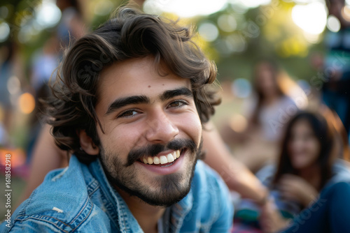 A young man celebrating party outdoors, generative ai