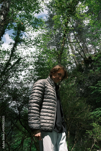 man, jacket, olympus, forest, tree, green, outdoors, nature, hiking, greece, sunlight, clothing, wood, mountain, natural, travel, explorer, adventure, landscape, wild, environment, fresh, retreat, young, relaxation, shade, peaceful, scenic, daylight, flora, pathway, cool, casual attire, underbrush, standing, solitude, wilderness, tranquil, seasonal, eco, walking, spring, people, journey, hike, lifestyle