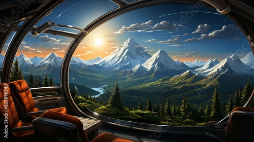 Aboard a luxury starliner, passengers enjoy panoramic views of distant stars and galaxies from the comfort of opulent lounges and observation decks. Painting Illustration style, Minimal and Simple,