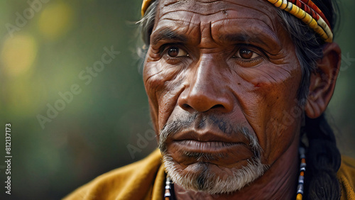 adult, man, oz, strong, rugged, photogenic, aboriginal, australian, native, silk, stripes, colourful, dress, attire, clothes, wanderlust, travel, holiday, vacation, backpack, visit, break, trip, jaunt, beauty, face, fashion, model, hat, traditional, people, south, person, costume, cold, hair, culture, art, mask, glamour, style, jewellery, generative, ai