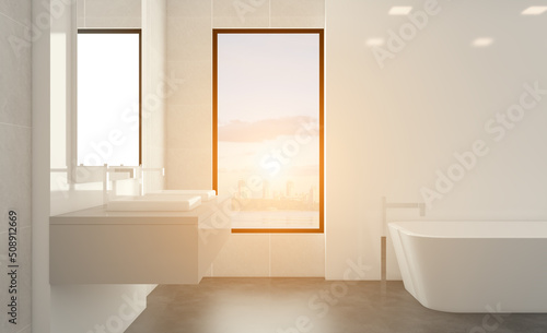 Abstract toilet and bathroom interior for background. 3D rendering.. Sunset.