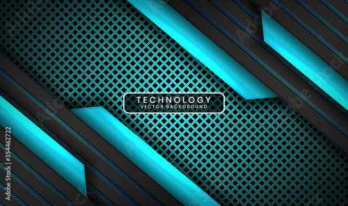 Abstract 3D black and blue techno background with light effect. Overlap layer on dark space with metallic rhomb patterns. Modern graphic design elements for poster, flyer, brochure, or landing page