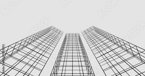 Abstract 3d wireframe architecture building modern condo background. 3d rendering.