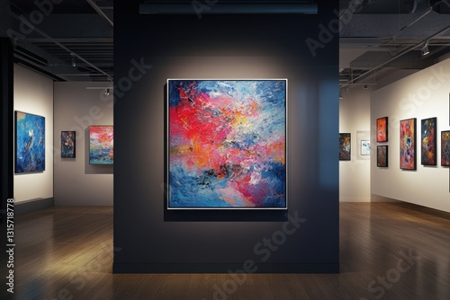 Abstract Art Exhibition with Colorful Paintings in Gallery Space