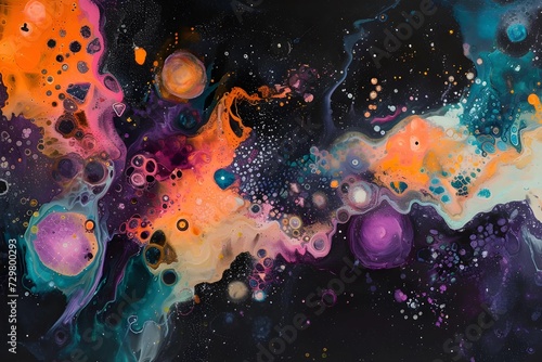 Abstract art piece inspired by the cosmos, incorporating cosmic elements and astral colors to depict the vastness of the universe, igniting imagination.