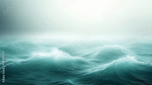 Abstract Background of Gentle Dark Teal Waves, Artistic Fluid Simulating Ocean with Wave Patterns