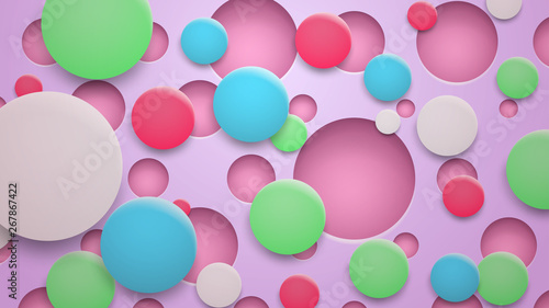 Abstract background of holes and multicolored circles with shadows