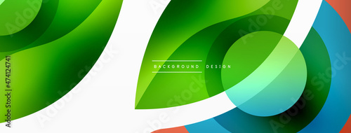 Abstract background with color geometric shapes. Beautiful minimal backdrop with round shapes circles and lines. Geometrical design. Vector illustration