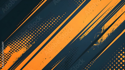 Abstract Background with Diagonal Orange Stripes and Black Dots