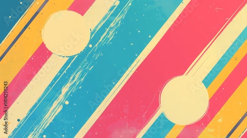 Abstract Background with Diagonal Stripes, Circles, and Splatters