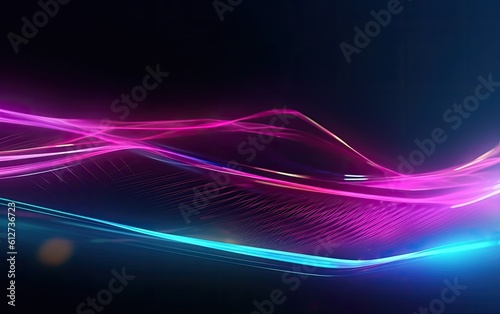 Abstract background with neon curve glowing lines. Generative AI.