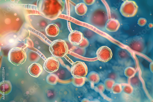 Abstract biology background, microscopic view of organic substances or cells. Candida fungi, Candida albicans, human pathogenic yeasts