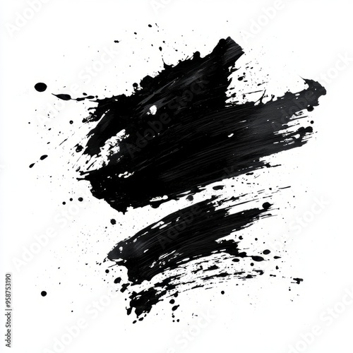 Abstract black in splash, paint, brush strokes, stain grunge isolated on white background, Japanese style