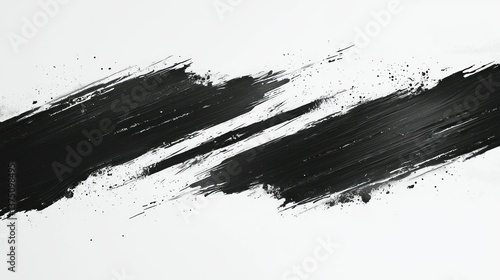Abstract Black Ink Strokes on White Background: A Dynamic Composition