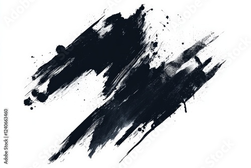 Abstract black paint splashes create dynamic visual energy on a white background for artistic expression