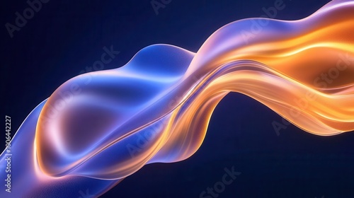 Abstract blue and orange flowing wave on dark background.