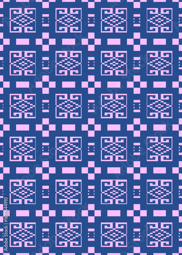 blue, pink, abstract design, seamless pattern, wallpaper, textile design, digital artwork, graphic design, pixelated, home decor, stationery, gift wrap, invitation, branding, minimal, clean, modern, simple, graphic, geometric, fun, playful, vibrant, light blue, pattern, seamless