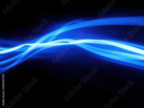 Abstract blue energy waves flowing on black background. Dynamic light streaks creating futuristic digital motion graphics effect