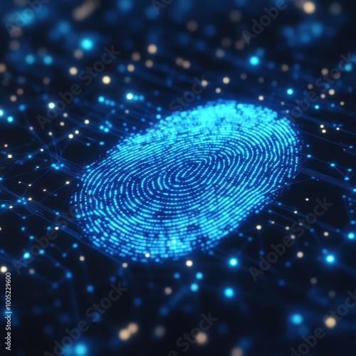 Abstract Blue Fingerprint on Circuit Board - Futuristic Digital Security Concept.