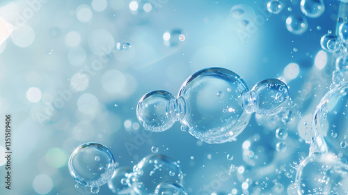 Abstract blue fresh hygiene template. Luxury cosmetics body care and clean energy. Concept shot of transparent elegant vitality serum air bubbles under water in macro, Generative AI