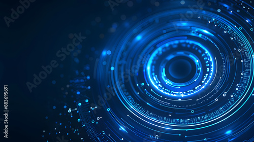 Abstract blue glowing geometric lines on dark blue background. Modern shiny blue circle lines pattern. Futuristic technology concept. Suit for cover, poster, banner, brochure, header, website