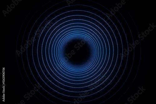 abstract, blue, neon, concentric, circle, tunnel, vortex, effect, dark, background, glowing, aglow, line, pattern, geometric, modern, design, digital, art, science fiction, futuristic, forever, depth, perspective, light, energy, motion, smooth, minimalist, tech, space, wormhole, ring, circular