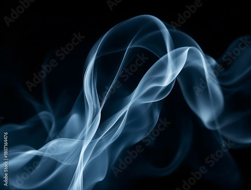 Abstract Blue Smoke Swirls on Black Background Vapor, Steam, Wave, Texture, Design, Creative, Concept, Art.