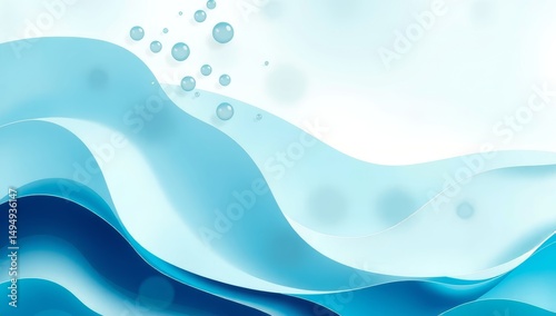 Abstract blue wave pattern with floating bubbles on white background