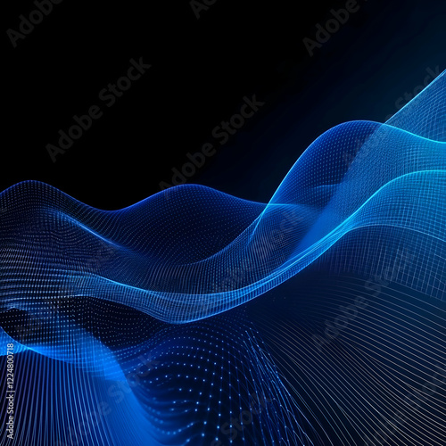 abstract, background, blue, wave, grid, digital, dark, line, mesh, network, technology, design, modern, futuristic, flow, connection, dynamic, energy, motion, art, science, communication, cyberspace, datum, cyberspace, innovation, signal, smooth, curve, pattern, particle, glow, illustration, render, three-dimensional, abstract background, blue background, dark background, digital background