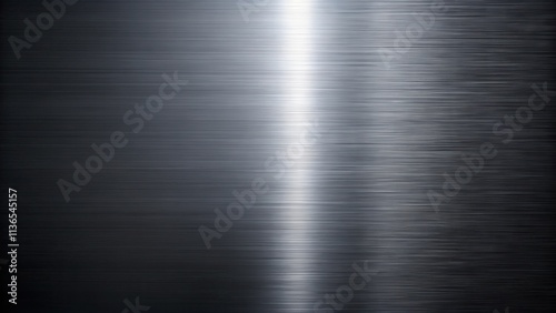 Abstract Brushed Metal Texture with Central Highlight Showing Linear Grain and Subtle Light Reflection