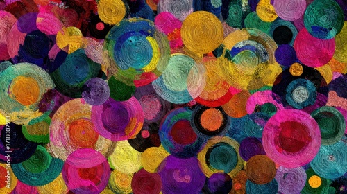 abstract, circle, colourful, vibrant, painting, art, design, texture, pattern, background, modern, contemporary, artistic, creative, expression, decorative, illustration, graphic, element, wallpaper, canvas, artwork, style, shape, round, form, overlay, blend, hue, tone, shade, tint, spectrum, pigment, acrylic, watercolor, oil, brushstroke, palette, composition, visual, dynamic, energy, movement, flow, rythm, balance, harmony